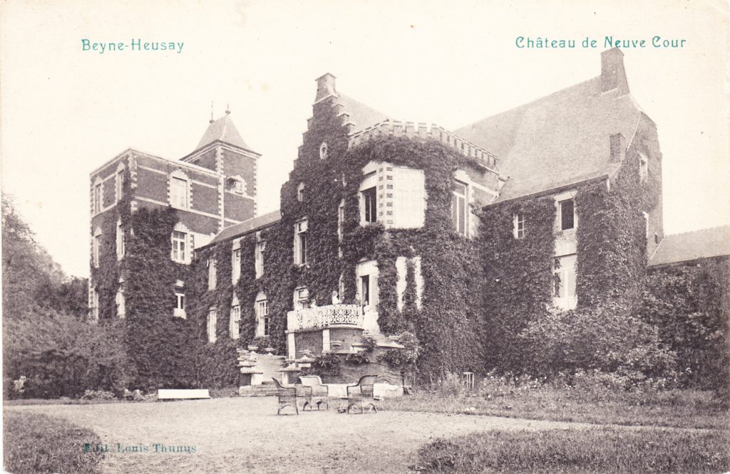 [1] Ceci est confirmé dans un jugement de la cour de Jupille de 1478 suite à des conflits de propriété qui indique que les « héritages, court, maison, jardins, cortil, prés, bois et trixhe nommés petite Beyne et Béharmont » appartiennent à Arnould de Barchon succédant à un certain Hurkin de Barchon. Source : Archives de l’Etat citées par Paul GUERIN dans « Le domaine de Neufcour à Beyne Heusay », publication BelairPictures, José Delhez. [2] Il est amusant qu’en plus d’être le nom du nouveau propriétaire qui donne son nom au château, Neufcour signifie également « nouvelle ferme » selon le Dictionnaire des noms de lieux en Wallonie et à Bruxelles. [3] La Ligue d’Augsbourg est une vaste coalition de rois et princes européens dressés contre la France de Louis XIV. Elle réunissait l’Espagne, une grande partie des princes allemands, les Pays-Bas, l’Angleterre, la Suède et le Danemark. [4] Au début du 20e siècle, la société Wérister acquiert un important patrimoine foncier et immobilier pour parer aux risques de dégâts des mines. [5] Ce lien avec la houille date de bien avant l’acquisition du domaine par la société Wérister. En effet, il était possible de ramasser de la houille à même le sol dans tout le domaine du fait de la présence d’affleurement de veines en surface.