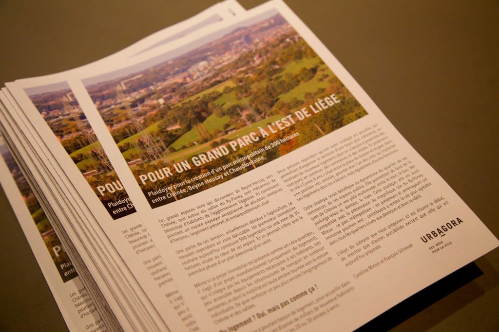 C’est donc un début très « classique » pour une lutte de ce type. La suite est un peu moins classique. À l’automne 2014, l’asbl liégeoise urbAgora (qui développe une vision critique de l’urbanisme et de l’aménagement du territoire sur la région liégeoise) publie une étude très documentée. Celle-ci critique de manière détaillée le projet Neufcour, formule une proposition alternative en matière de développement du logement (sur la friche de l’ancien site industriel de Cuivre et Zinc / LBP également situé à Chênée) et avance l’idée de créer un parc métropolitain sur une vaste zone d’espaces verts et de terres agricoles de 300 hectares à cheval sur Chênée, Beyne-Heusay, Romsée et Vaux-sous-Chèvremont (incluant la zone visée par le projet Neufcour).