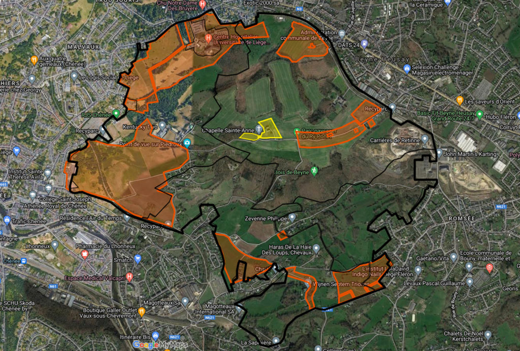 Le parc du Ry-Ponet s’étend sur 4 communes : Liège, Beyne-Heusay, Chaudfontaine et Fléron. Certaines parties de ce vaste ensemble sont sous la menace de divers projets. Quels sont les principaux endroits menacés ? Pourquoi ceux-là et pas d’autres ? Et quelles sont ces menaces ? Risquent-elles de se concrétiser prochainement ?