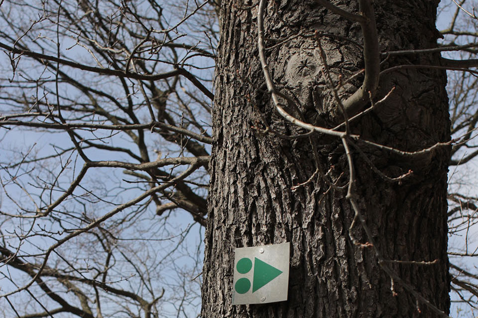 Les balises sont normalisées et composées de deux ronds surmontés d’un triangle. Elles sont de couleur verte pour ce circuit. La pointe du triangle indique la direction à suivre.