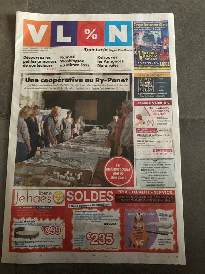 Notre projet de coopérative fait la première page du Vlan, éditions Liège Rive Droite et Fléron !
