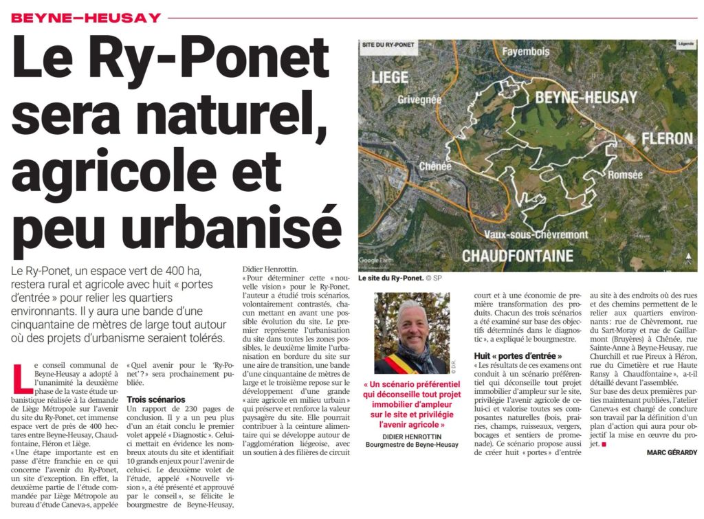 Continuer la lecture de « Trois promenades guidées à la (re)découverte des paysages nourriciers du Ry-Ponet, le dimanche 21 avril en après-midi. »Le Ry-Ponet sera naturel, agricole et peu urbanisé – La Meuse – Marc Gérardy
