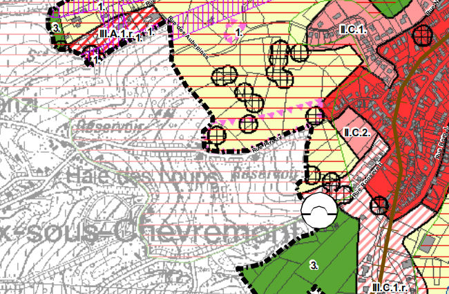 [1] En 1995, la Région Wallonne avait comme objectif la révision des Plans de Secteur et, dans ce cadre, la détermination des Périmètres d’Intérêt Paysager, des Points de vue et Lignes de vue remarquables à y inscrire, et ce parce que les Périmètres inscrits lors de l’élaboration des plans de secteur ne l’avaient pas toujours été selon des critères pertinents. La Région Wallonne a alors confié une étude à l’ASBL ADESA. Les modifications n’ont malheureusement jamais eu lieu mais l’étude ADESA est régulièrement consultée et a une valeur indicative. [2] Les points de vue remarquables (PVR) « sont des lieux ponctuels d’où l’on jouit d’une vue particulièrement belle » ; tandis que les lignes de vue remarquables (LVR) « sont des lieux linéaires d’où l’on jouit d’une vue particulièrement belle ». [3] Le schéma de structure communal de Chaudfontaine définit une zone sensible comme étant une zone qui se distingue par des qualités ou des contraintes importantes : intérêt paysager (lignes de crête, lignes de rupture de pente, point de vue, ligne de vue), pente importante (talus), […], proximité ligne LGV, proximité d’un site classé […], biodiversité […], monument, parc, zone inondable, puis de mine, terril. (Extrait du document « Schéma de structure communal, Volume 2, Options » rédigé en 2012 par le bureau fh&associés, p. 78.) [4] Le schéma de structure communal de Chaudfontaine définit une zone déconseillée à l’urbanisation comme étant une zone qui se distingue par des contraintes très importantes : zones inonsables d’aléa élevé, zones de risque d’éboulement, zones sous ligne à haute tension, zones centrales du PCDN (Plan Communal de Développement de la Nature), points de vue essentiels sur l’abbaye de Beaufays (site et monument classé). Le schéma de structure de Chaudfontaine émet des recommandations pour une zone « déconseillée à l’urbanisation ». Selon ce schéma, cette zone doit être destinée aux espaces verts et au maillage vert et être déconseillée à l’urbanisation de tout bâtiment, que la densité résidentielle reste inférieure à 0,5 logement par hectare [ce qui reviendrait à pouvoir construire maximum 4 logements sur toute cette surface] et qu’en cas de demande de permis, une simulation sur photos panoramiques du projet dans son environnement soit exigée. Le schéma insiste au sujet de la végétation pour que « la plantation d’arbres isolés et alignés et de haies d’essences locale soit encouragée » et, lorsque la zone est de qualité paysagère ou comporte une biodiversité intéressante, que toute la faune et la flore indigènes [à l’exception des espèces chassée ou nuisibles] soient protégées et que des actions favorisant la biodiversité soient encouragées. De la même manière, il est demandé que l’emploi d’engrais chimique et de produits phytosanitaires soit réduit au minimum. (Extrait du document « Schéma de structure communal, Volume 2, Options » rédigé en 2012 par le bureau fh&associés, p. 79.) [5] Extrait du document « Schéma de structure communal, Volume 2, Options » rédigé en 2012 par le bureau fh&associés [6] Extrait du document « Schéma de structure, Phase II, Options et programmation » rédigé en 2011 par le bureau Pluris (pages 46 à 48).