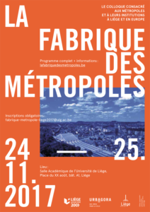Nous sommes également invités en novembre 2017 à participer en tant qu’intervenant au colloque « La Fabrique des Métropoles » organisé conjointement par l’Université de Liège et urbAgora et consacré au thème de la supracommunalité et aux possibles avenirs métropolitains de Liège.