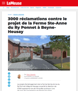 3000 réclamations contre le projet de la Ferme Ste-Anne du Ry Ponnet à Beyne-Heusay – Marc Gérardy – La Meuse