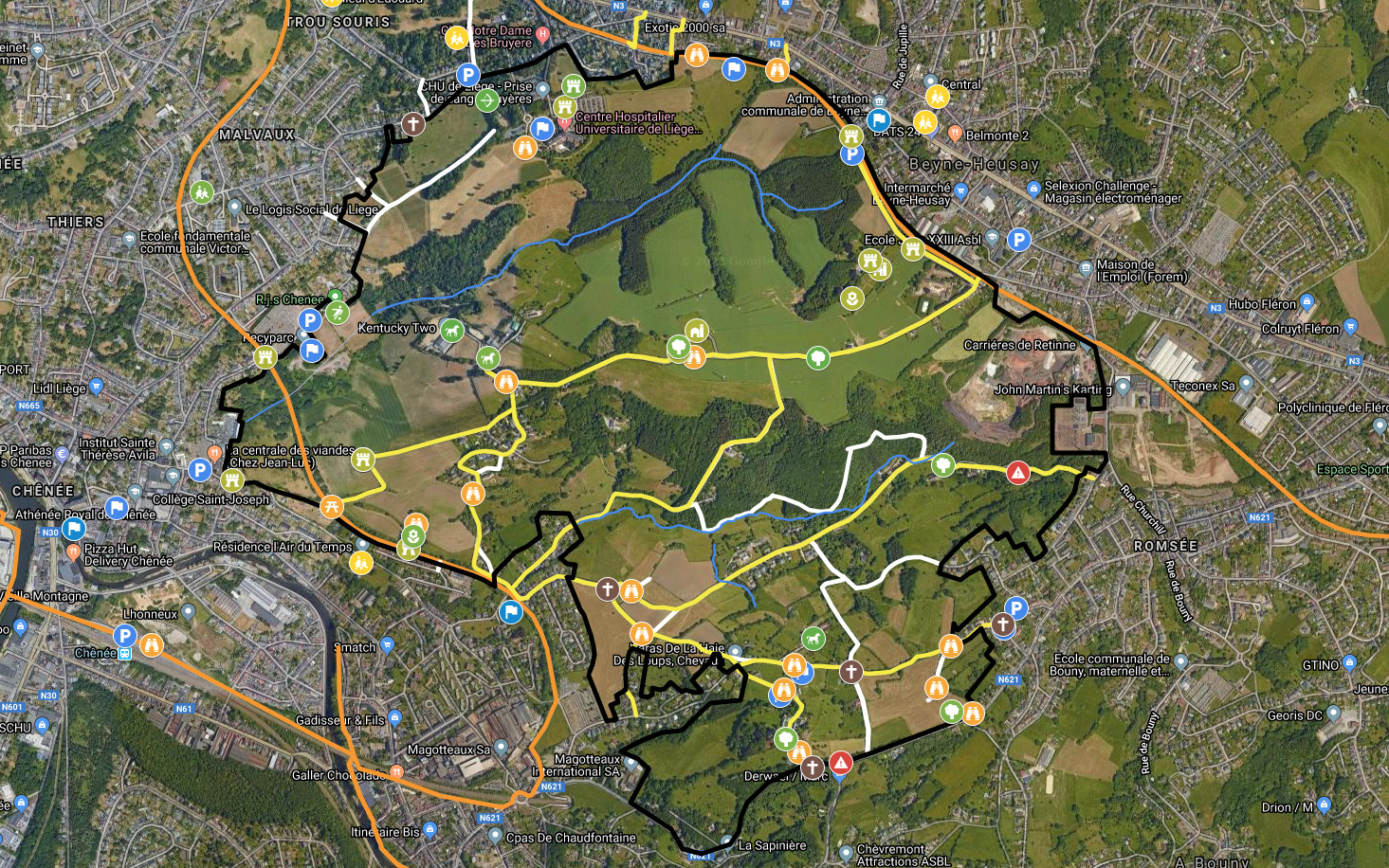 Nous sommes fiers de vous présenter la toute 1ère carte des promenades du Parc Paysager du Ry-Ponet et de son réseau points-nœuds pédestre.