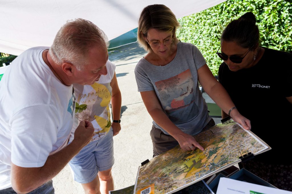 Les 151 participants qui nous ont rendu visite tout au long du week-end ont été accueillis à notre stand. Ils ont pu y obtenir des informations sur la Plateforme Ry-Ponet, sur le réseau Occupons le Terrain dont elle fait partie, mais aussi ils ont pu acquérir notre toute nouvelle carte de promenades dont la vente a été inaugurée à l’occasion de cette manifestation. Elle a remporté un grand succès puisque c’est une centaine de cartes qui ont été vendues.