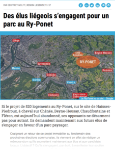 « Des élus liégeois s’engagent pour un parc paysager au Ry-Ponet » – La Meuse – Geoffrey Wolff