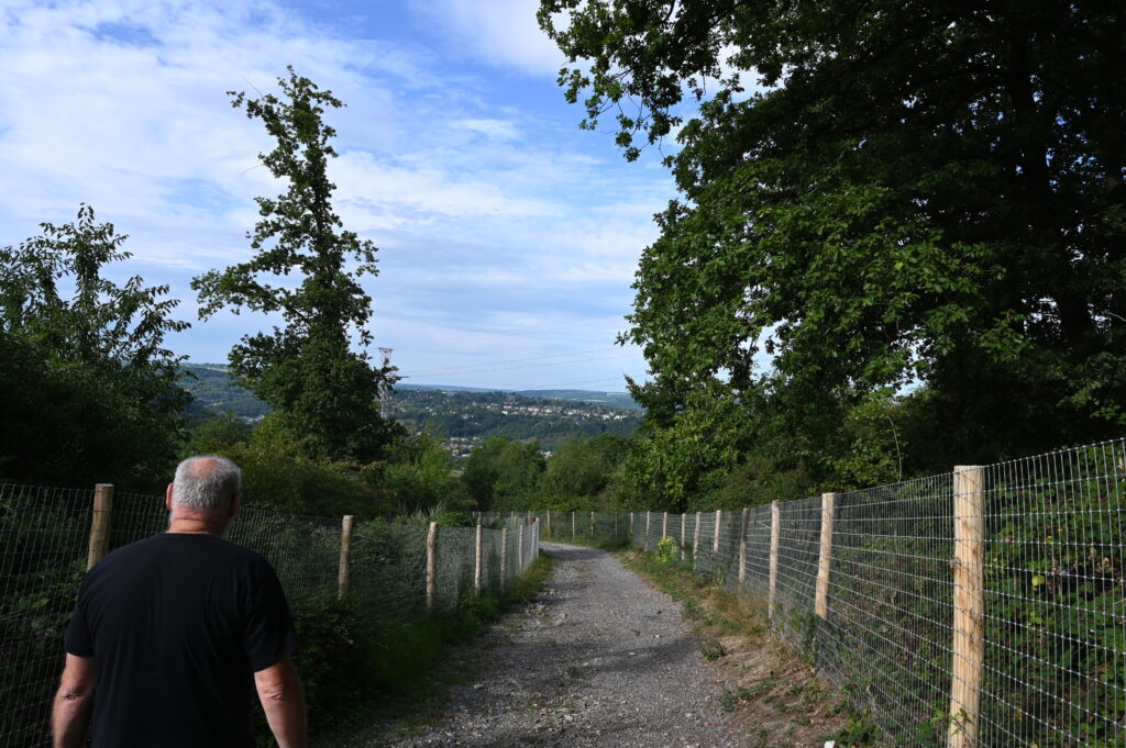 C’est là, au-dessus du bois de Beyne, que nous avons vu passer un rapace, malheureusement pas très distinctement car il se trouvait à contre-jour. Nous ne l’avons pas reconnu. Il a fallu attendre de consulter le résultat des photos pour se rendre compte qu’il s’agissait d’un faucon hobereau. C’est la première fois que nous avons observé cette espèce dans le Parc du Ry-Ponet.