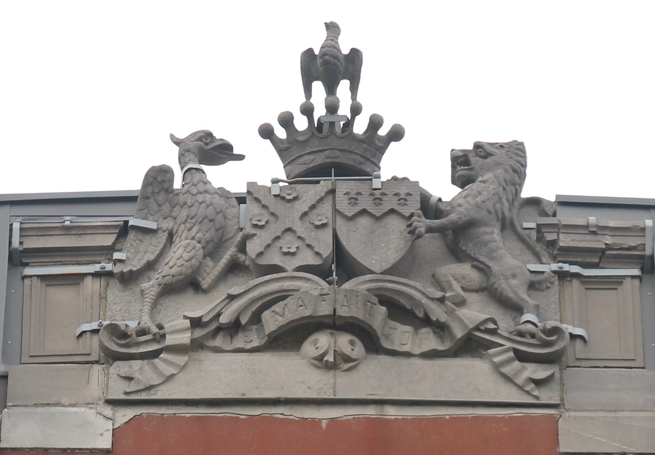 Sur le fronton de la façade, il fait placer les armoiries « de la Rousselière – de Floen d’Adlercrona » (ses parents) et « de la Rousselière – de Robiano ». On retrouve également ces armoiries dans les vitraux de la chapelle attenant au château.