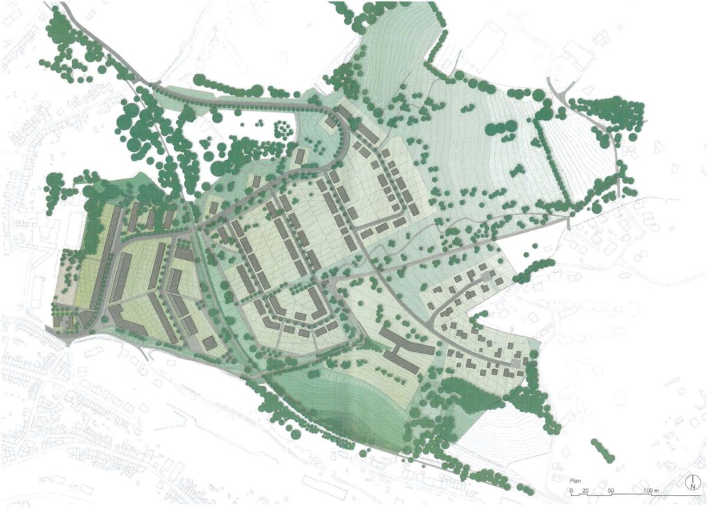 - une implantation des voiries, des immeubles et des gabarits totalement inadaptés (des immeubles jusqu’à rez+5 niveaux dans les Haïsses, rez+4 niveaux sur la terrasse proche du PP9B et jusqu’à une tour de rez+8 niveaux dans le site des Piedroux ;