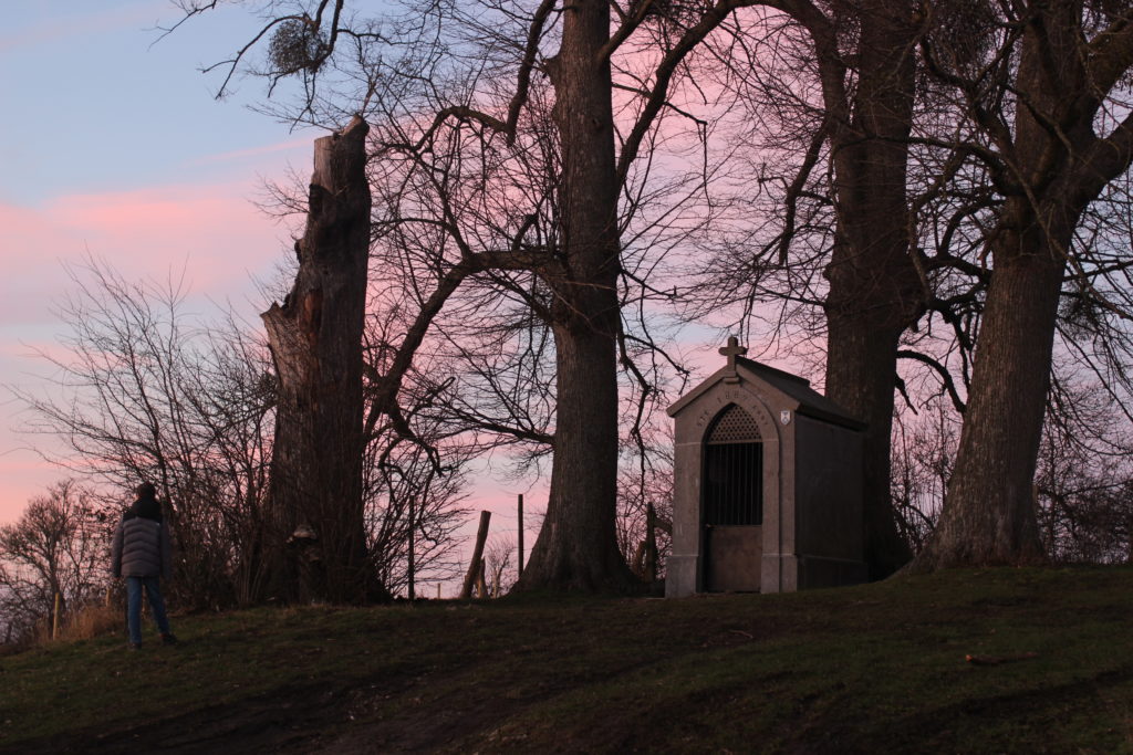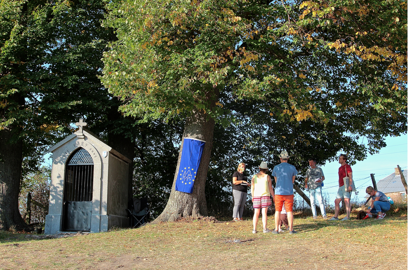 Arrivés à destination, vous découvrirez l’histoire étonnante de cette chapelle. Construite en 1879 autour d’un petit monument datant de 1794 qui abrite aujourd’hui encore la statue de Sainte Anne, elle se situe au croisement des deux révolutions de 1789, la française et la liégeoise, et de deux saintes Anne, la wallonne et la bretonne.