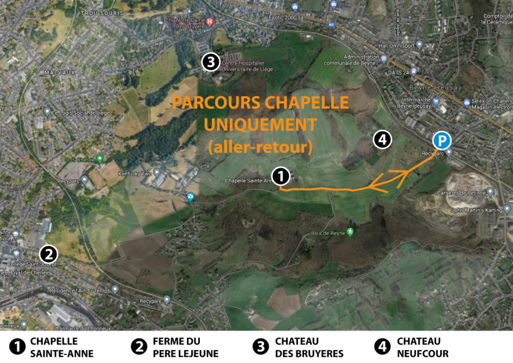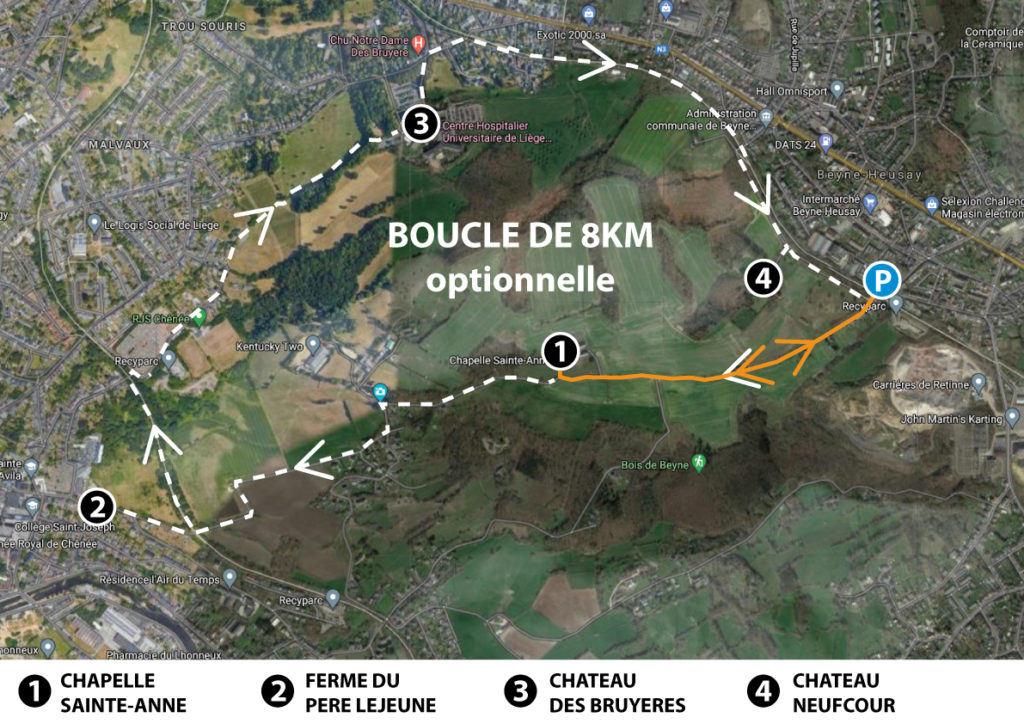 - Parcourir la boucle de 8km dans le parc du Ry-ponet de manière à découvrir les 4 éléments de patrimoine: