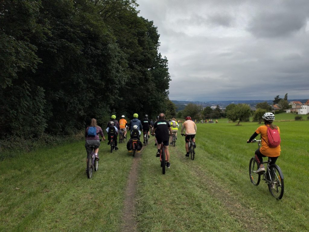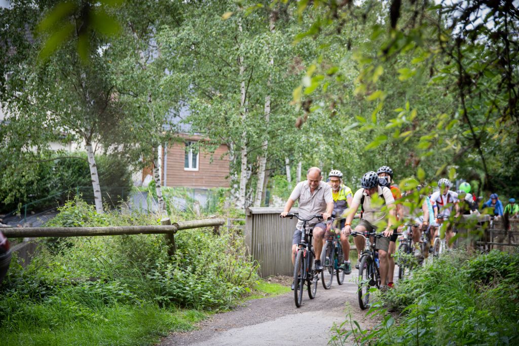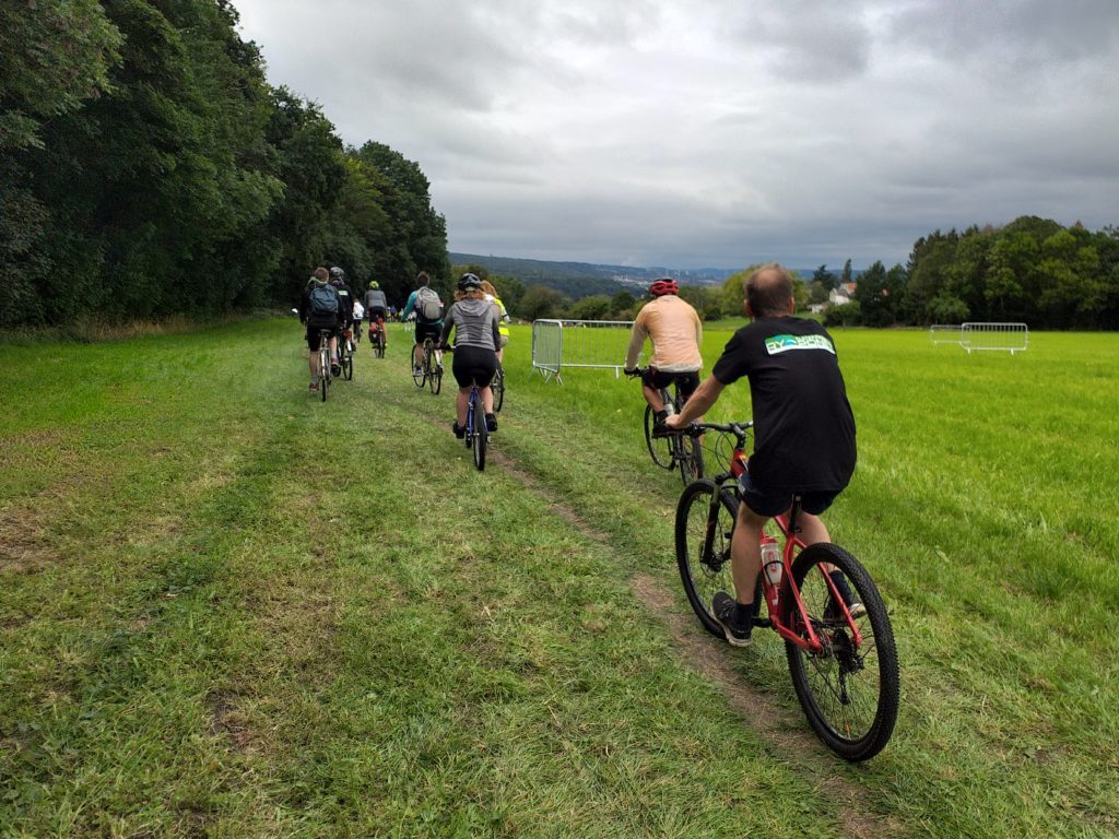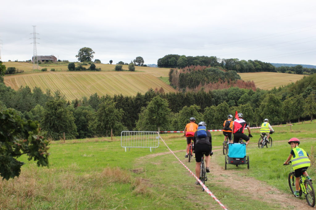 Pour revenir sur le site de Notre-Dame des Bruyères, les participants ont pu traverser de manière exceptionnelle les prairies privées, offrant aux cyclistes, à l’issue des 30 km parcourus, une vue sur le magnifique vallon du ruisseau du Ry-Ponet.