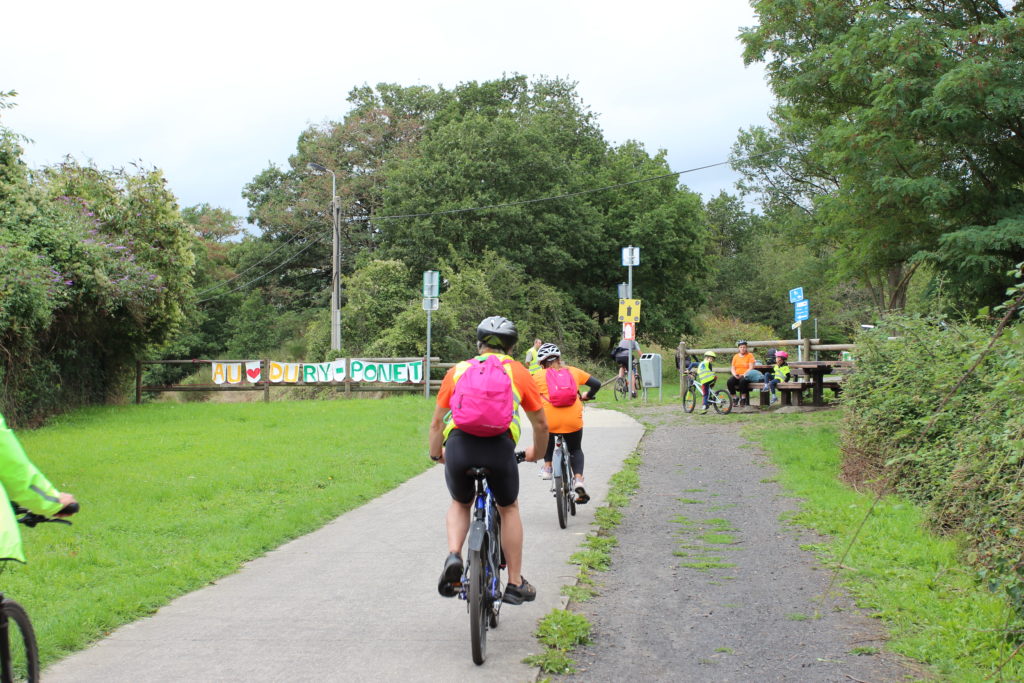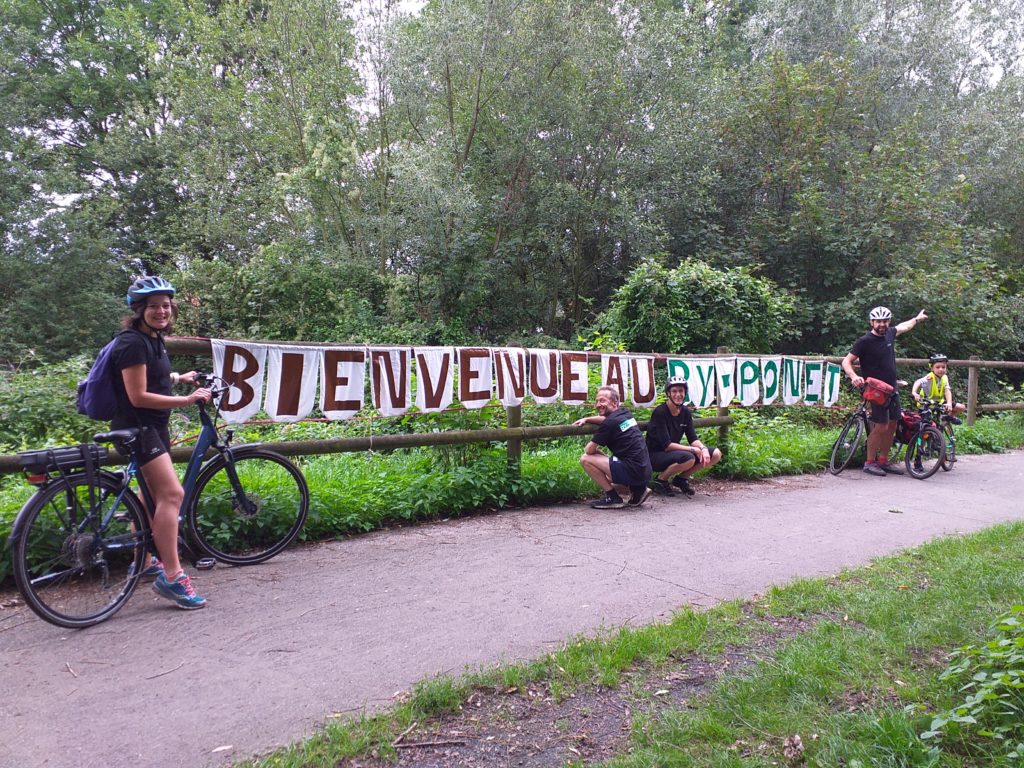 Après la halte gourmande, retour par Colonster puis le RAVeL de l’Ourthe et enfin la Ligne 38 ramenant les participants au coeur du Ry-Ponet où les bénévoles de notre Plateforme avaient confectionné de beaux messages accueillants qui ont plu à Manon Lepomme.