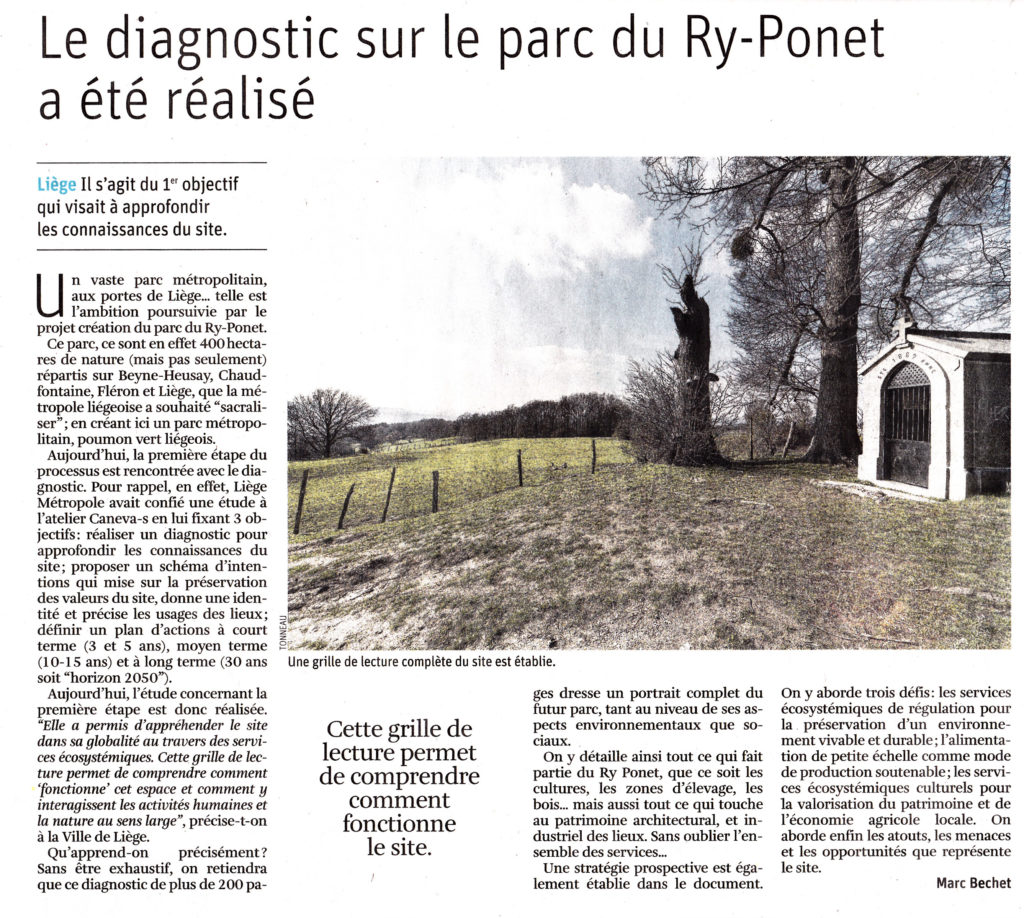 Le diagnostic sur le parc du Ry-Ponet a été réalisé – La Libre Belgique – Marc Bechet