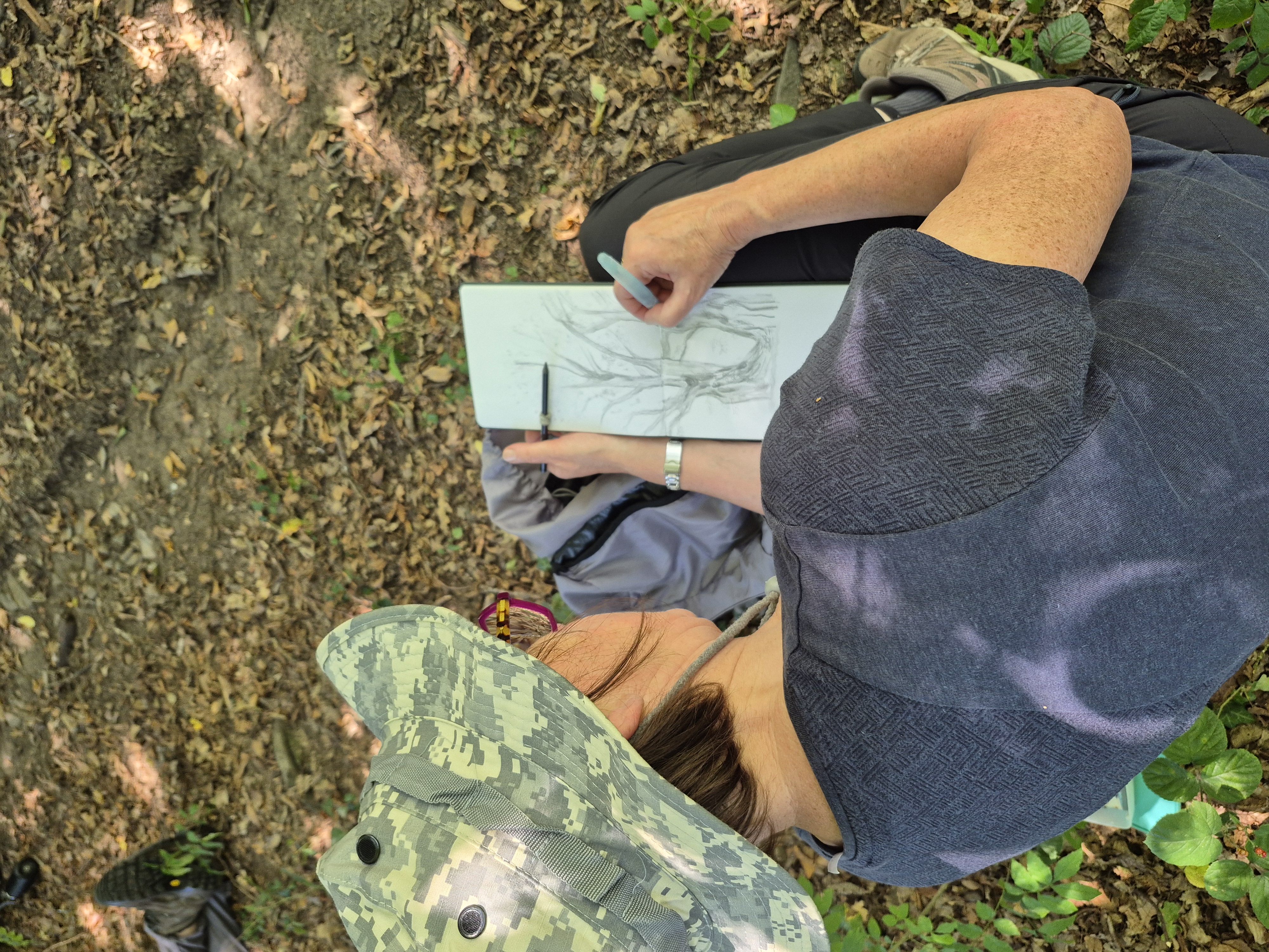Sophie, membre de notre Plateforme, a eu la grande chance de participer aux 6×2 jours de cette formation délivrée dans le courant de l’année 2024 par Mélanie Rutten. Selon elle, « observer, dessiner, nommer, c’est faire exister le vivant plus-qu’humain dans d’autres échelles de temps et d’espace. L’art de l’observation est une pratique du soin et de résistance à l’oubli, à l’invisibilisation. »