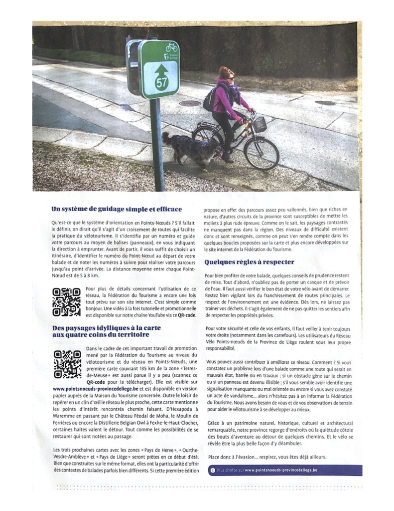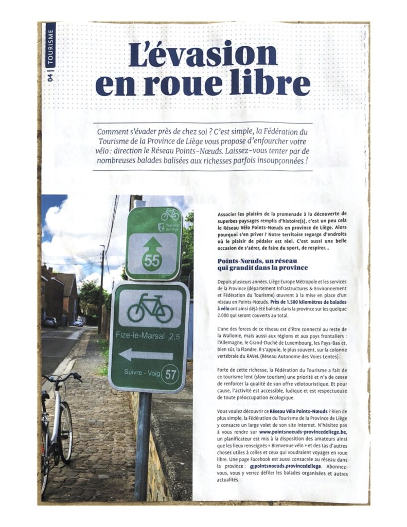 Comment s’évader près de chez soi ? C’est simple, dans le dernier numéro de Notre Province (n°89, Juin 2020), la Fédération du Tourisme de la Province de Liège nous propose de le faire en enfourchant notre vélo avec le Réseau Points-Noeuds.