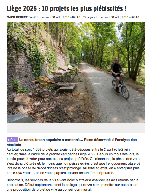 « Liège 2025: 10 projets les plus plébiscités » – DH – Marc Bechet
