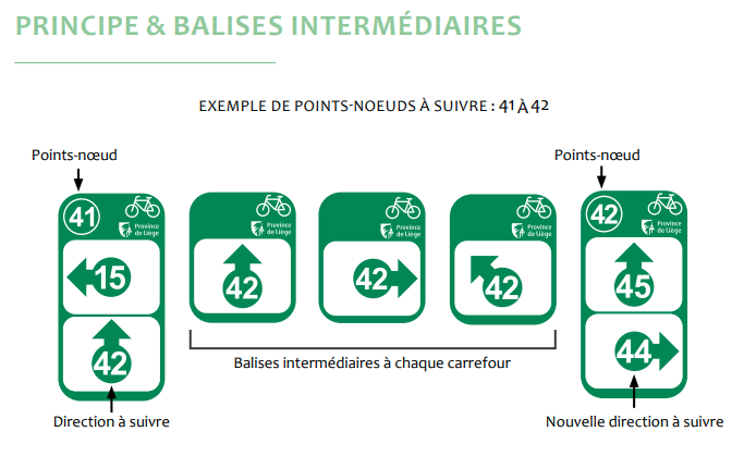 A l’échelle de la Wallonie, vous trouverez des informations sur le système de réseau points-noeuds cyclable sur la page appropriée du site Visit Wallonia.