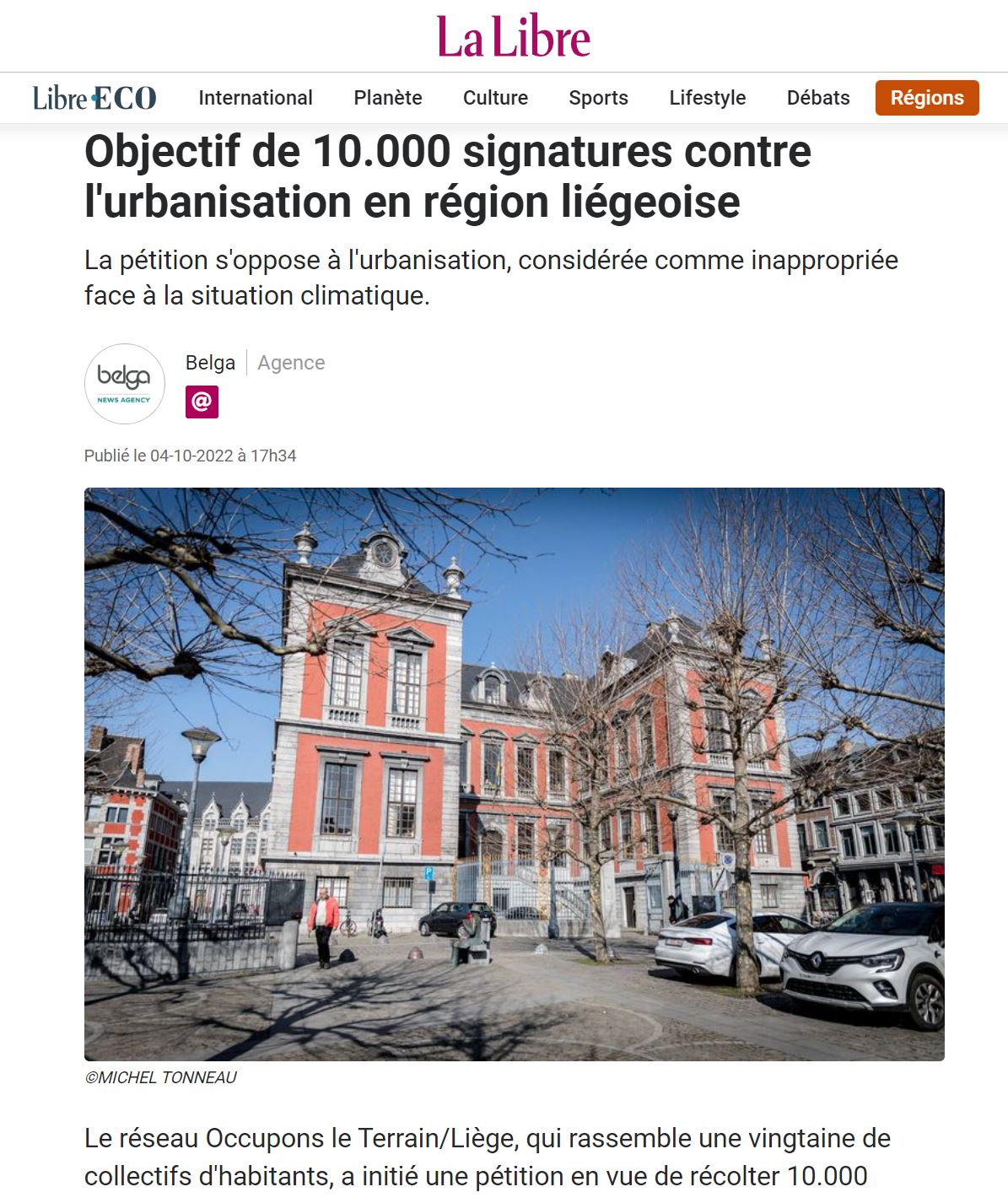 Article précédentPrécédent Objectif de 10.000 signatures contre l’urbanisation en région liégeoise – La Libre Belgique