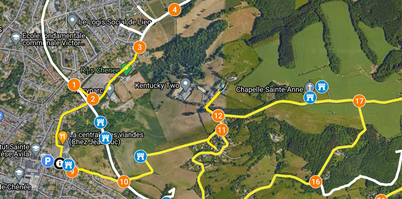Carte numérique du réseau points-noeuds pédestres du Parc paysager du Ry-Ponet