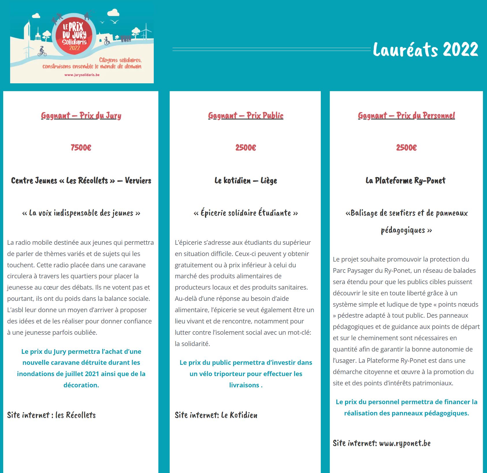 La Plateforme Ry-Ponet récompensée par l’un des « Prix du Jury Solidaris 2022 ». Un beau coup de pouce pour notre projet de balisage de sentiers et de panneaux pédagogiques.
