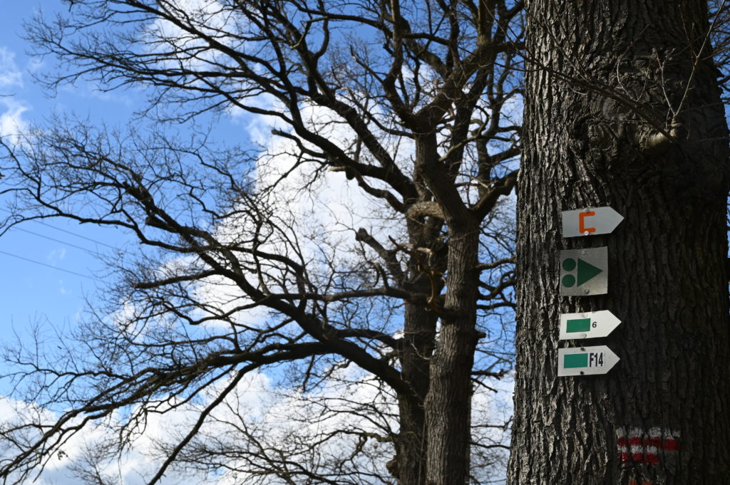 L’itinéraire est balisé à l’aide de rectangles verts avec l’inscription F14.
