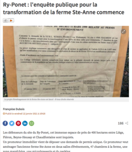 Article précédentPrécédent « Ry-Ponet : l’enquête publique pour la transformation de la ferme Ste-Anne commence » – Françoise Dubois – RTBF