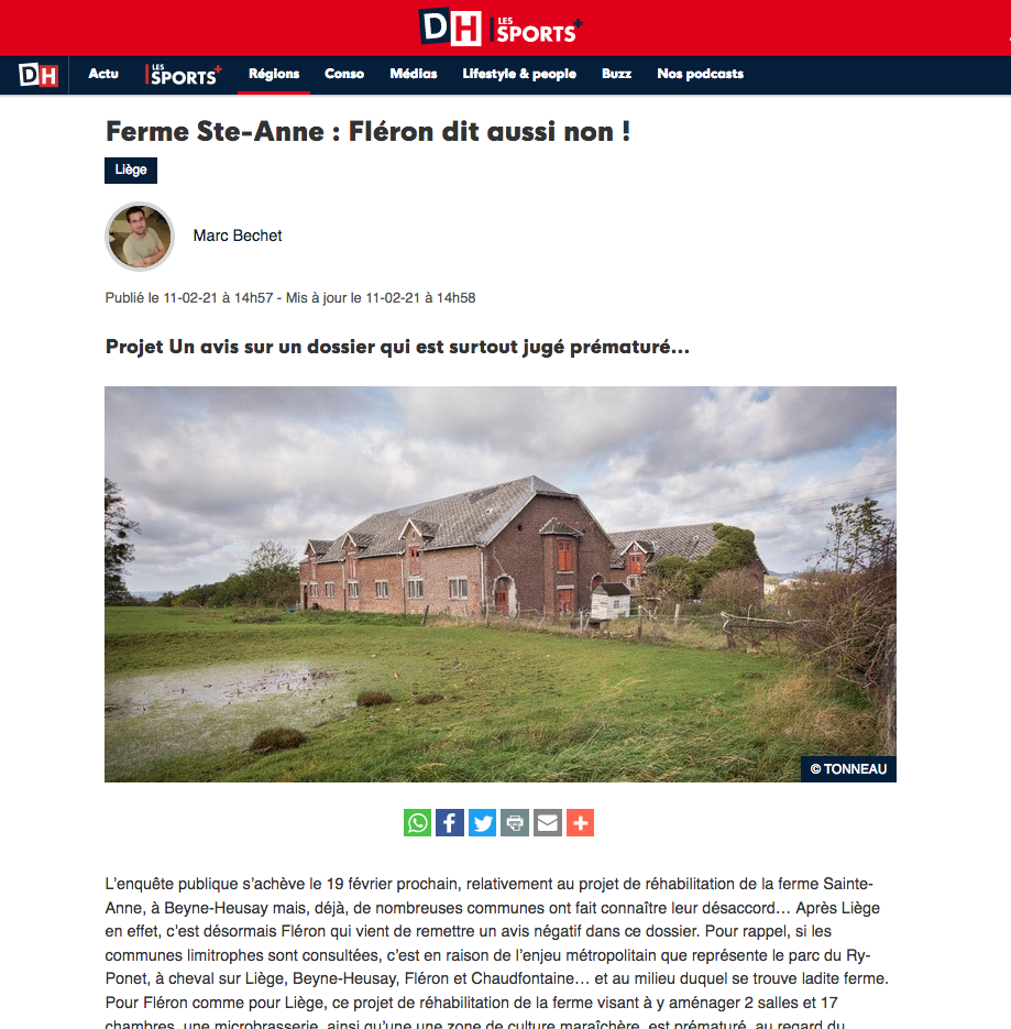 3000 réclamations contre le projet de la Ferme Ste-Anne du Ry Ponnet à Beyne-Heusay – Marc Gérardy – La Meuse