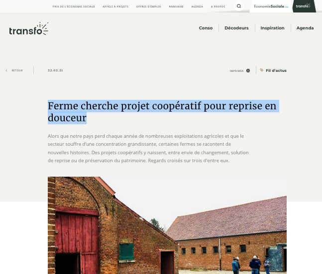 Ferme cherche projet coopératif pour reprise en douceur – Transfo