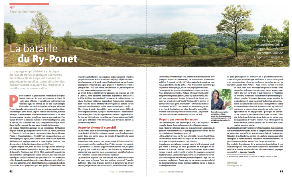 C’est sous ce titre très martial que Laure de Hesselle a consacré dans le dernier numéro du magazine Imagine un excellent article qui présente à la fois le « dossier » du Ry-Ponet et l’action que mène depuis quatre ans la Plateforme Ry-Ponet pour préserver ce magnifique site.