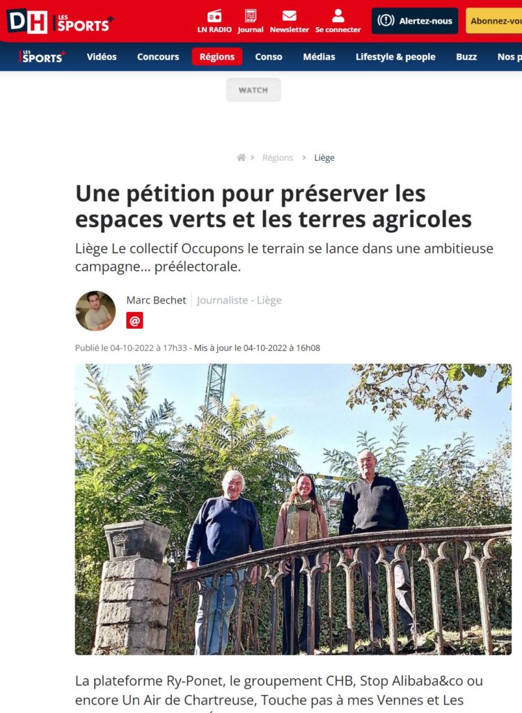 Publié le 4 octobre 20227 octobre 2022 par S.Une pétition pour préserver les espaces verts et les terres agricoles – DH – Marc Bechet Cliquez sur l’image pour lire l’article en entier.
